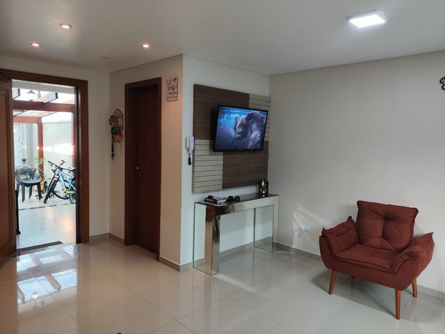Triplex à venda com aproximadamente 150m², ideal para quem busca conforto, espaço e versatilidade. A configuração atual conta com 2 dormitórios, sendo uma ampla suíte master com closet, mas é possível retornar facilmente à planta original com 3 quartos. Ambientes integrados e bem distribuídos: sala de estar, cozinha planejada, banheiro social, edícula com churrasqueira, além de um ático aconchegante adaptado como escritório.