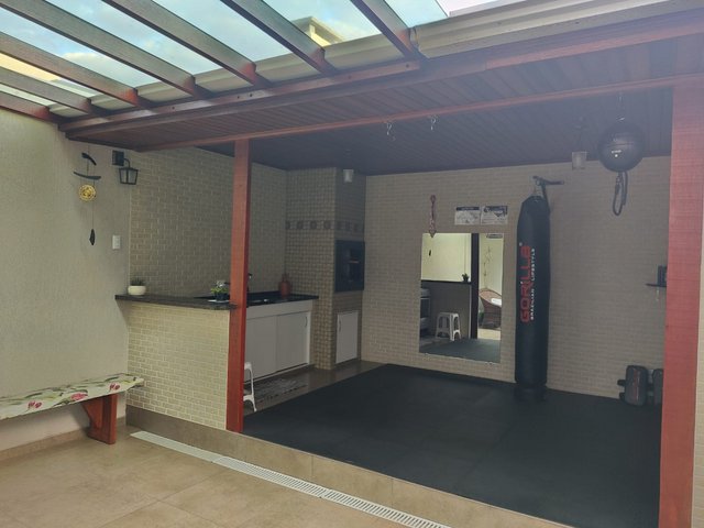 Itens que permanecem no imóvel: cozinha interna planejada, guarda-roupa de 6 metros na suíte, móveis sob medida nos três banheiros, pia e fogão na área da churrasqueira e mobília do escritório no ático.