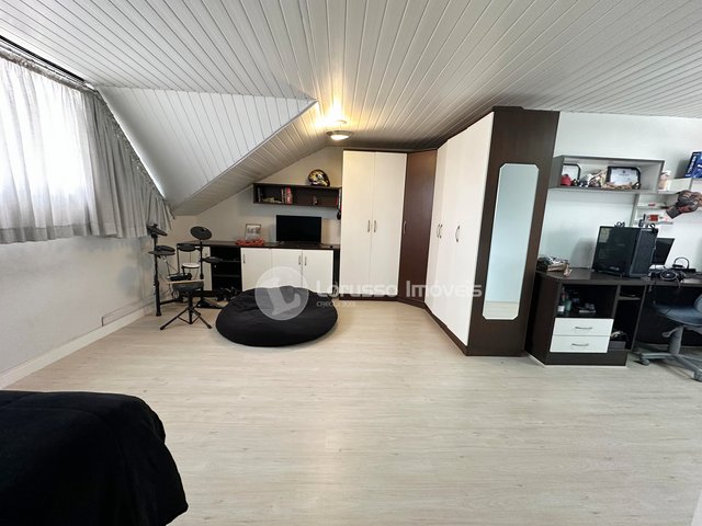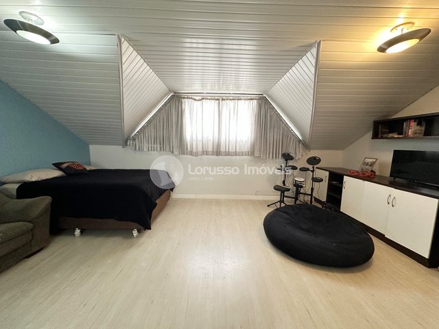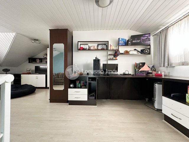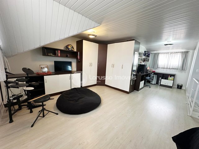 A área social é acolhedora e funcional: sala ampla com teto rebaixado em gesso, iluminação embutida e painel planejado; sala de jantar integrada; lavabo decorado com papel de parede; e cozinha equipada com armários sob medida. O ático com lavabo traz versatilidade para ser home office, sala íntima ou de jogos.