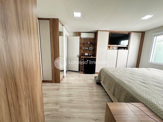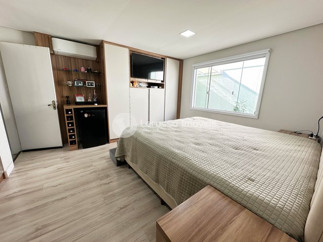 A suíte com closet é um refúgio particular, enquanto os demais dormitórios, todos com ar-condicionado, garantem conforto em todas as estações.