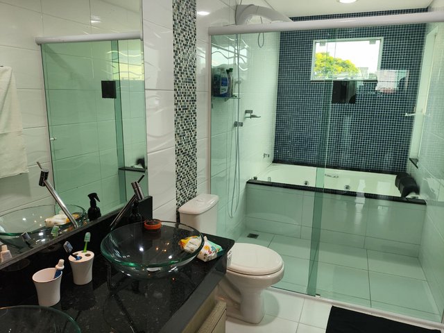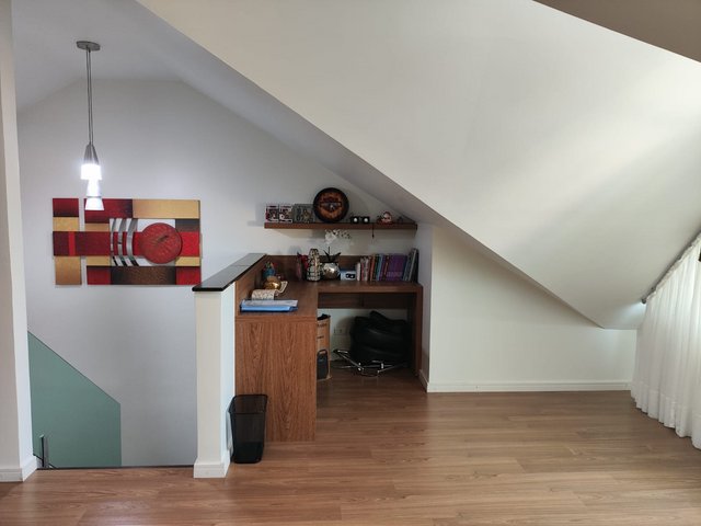 Itens que permanecem no imóvel: cozinha interna planejada, guarda-roupa de 6 metros na suíte, móveis sob medida nos três banheiros, pia e fogão na área da churrasqueira e mobília do escritório no ático.
