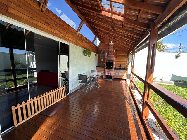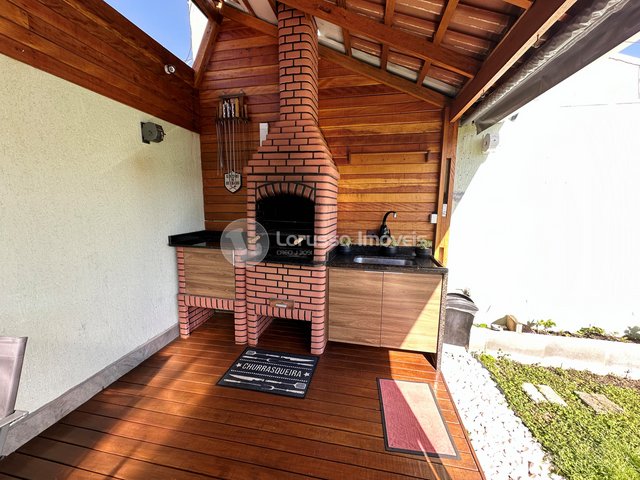 A área social convida a viver bons momentos: sala para dois ambientes com jardim de inverno, ambientes integrados a área gourmet coberta que é o coração da casa — com deck em madeira, churrasqueira e toldo retrátil, perfeita para reunir família e amigos. O jardim amplo completa o cenário, trazendo leveza e contato com a natureza.