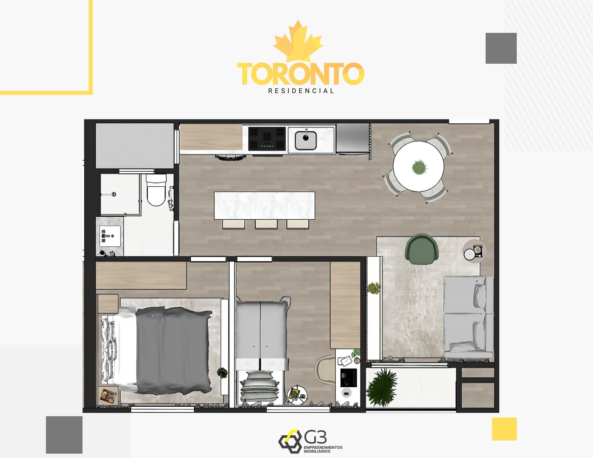 Apartamento com 45,35m² muito bem distribuídos, oferecendo o equilíbrio ideal entre funcionalidade e aconchego:
